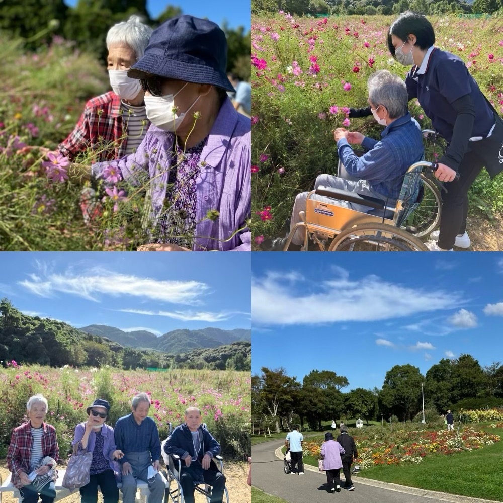 秋晴れの心地よい一日、入所者の皆様とリフレッシュパーク豊浦へコスモスを見に出かけました。