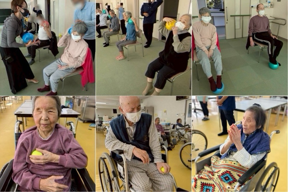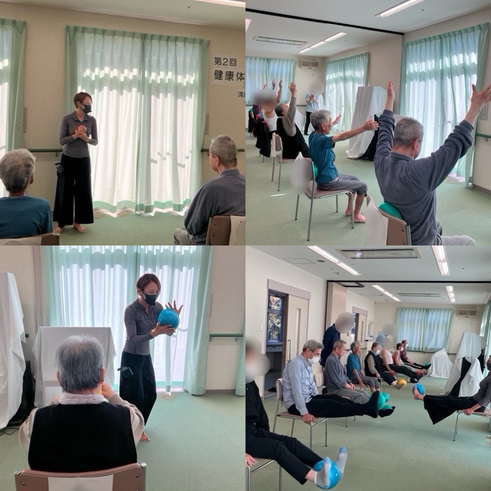 今回は、ボールやテニスボールを使った運動も取り入れ、手のひらや足の裏をコロコロ転がして血行を促すなど、気持ちよく体をほぐしました。参加者多数のため、時間を分けての二部形式でおこないましたが、どちらの回も笑顔があふれ、会場はとても和やかな雰囲気に包まれました。